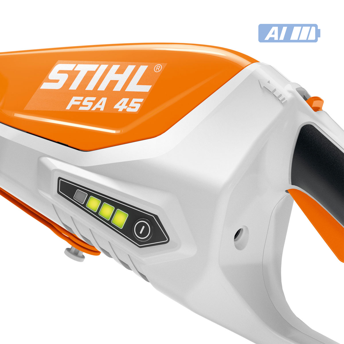 La Orilladora a batería STIHL FSA 45 es el equipo apropiado para realizar las terminaciones de las orillas del jardín de su hogar posterior al corte de césped. La comodidad de trabajar en forma silenciosa, con la seguridad de modificar el ángulo de corte y altura del equipo de forma simple y sin la emisión de gases contaminantes, hacen de la tarea de orillar un verdadero deleite para los amantes del jardín. Realice fácilmente sus propias labores con la nueva tecnología de STIHL BATERÍA.